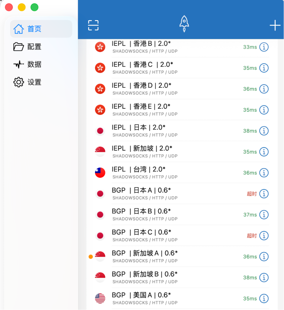 几秒钟后节点列表就出来了。我一般选香港线路,iPhone上延迟最低。